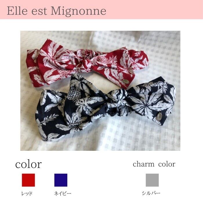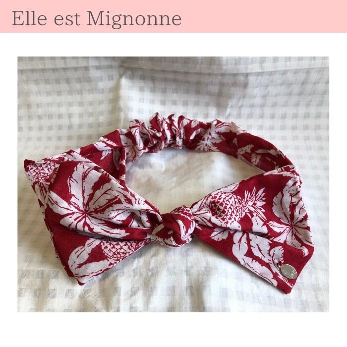 パイナップル柄のリゾート感溢れるリボンヘアバンドです。